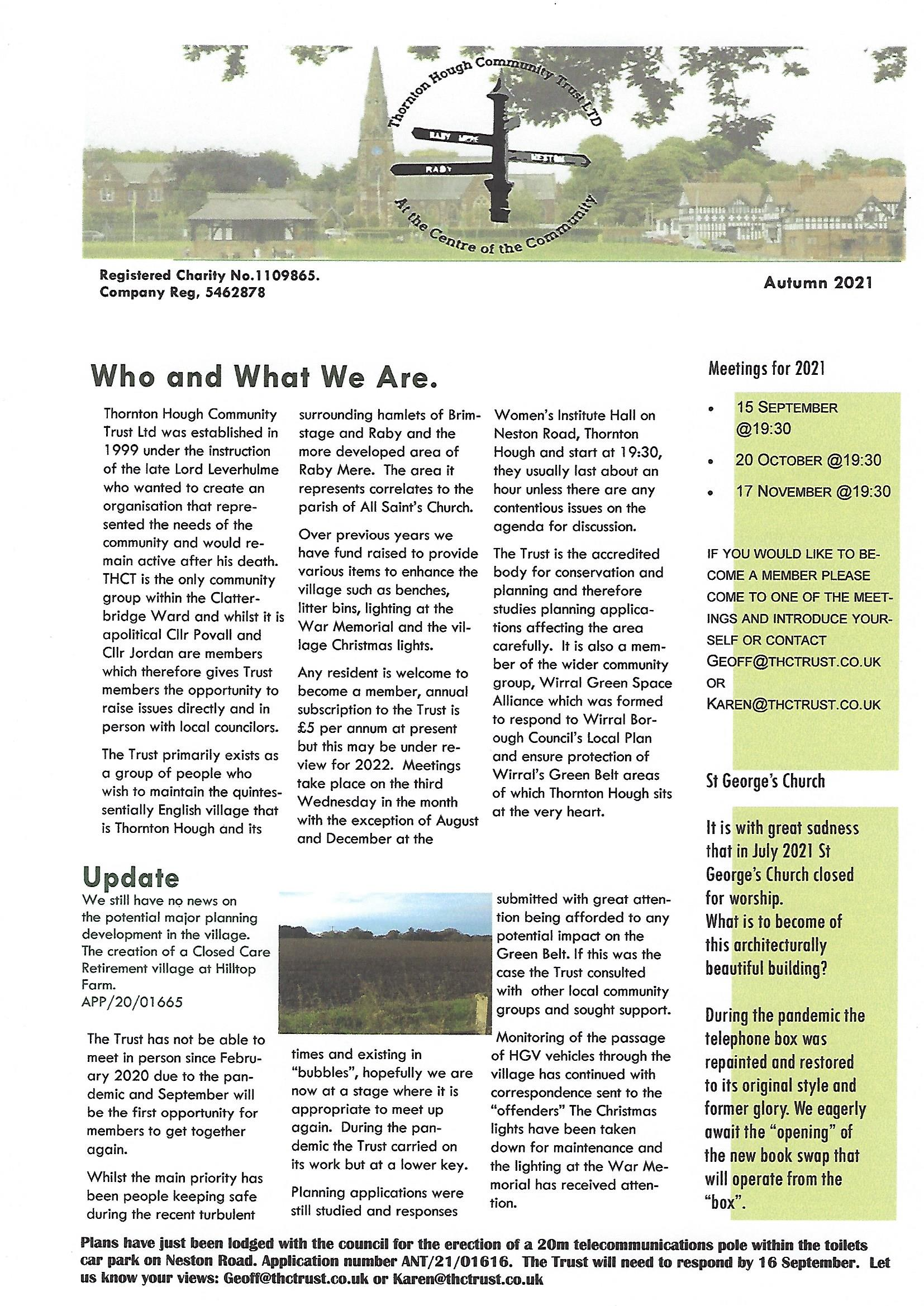 For further information please contact Geoff Dale, Chairman Geoff@thctrust.co.uk